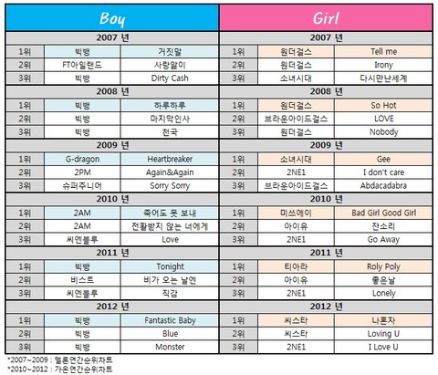 2회 2007~2012 남녀아이돌 음원순위 t...