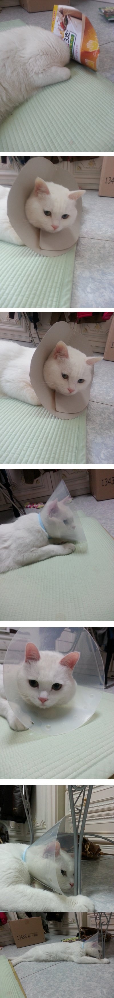 (수술부위 계속핥길래 긴급처방으로 박스로 깔대기만들어주고 바로 병원가서 깔대기 사옴 ㅋㅋㅋㅋ)