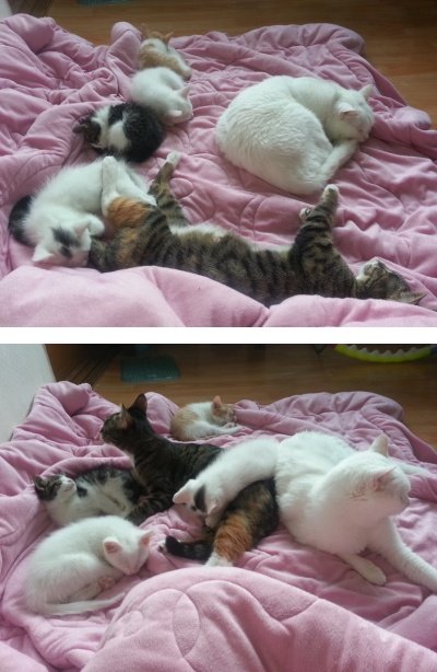 레오 레미가 처음으로 사고를 쳐서 아주그냥 떡고양이같은 애기들을 숨풍숨풍 낳음!