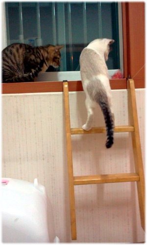 창가에 올라가기 좋아하는 우리 애기들 ㅋㅋ 근데 올라갈때 좀 위험해 보여서 사다리를 달아줬어요..ㅎ