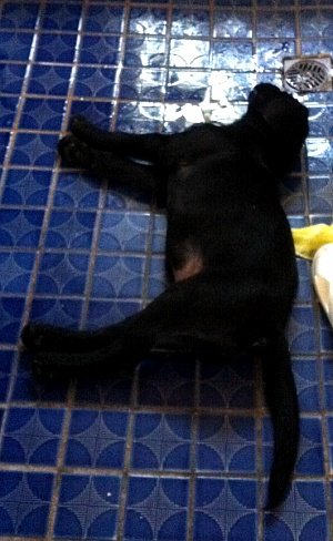 낮잠은 자야겠고..날씨는 너무 덥고..화장실 바닥은 시원하고