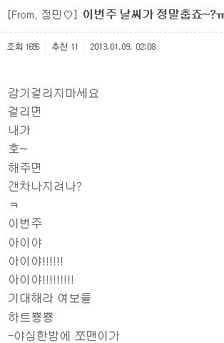 헐 ........정민아 사랑해 ㅋㅋㅋㅋㅋㅋㅋㅋㅋㅋㅋ
