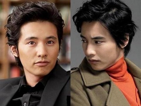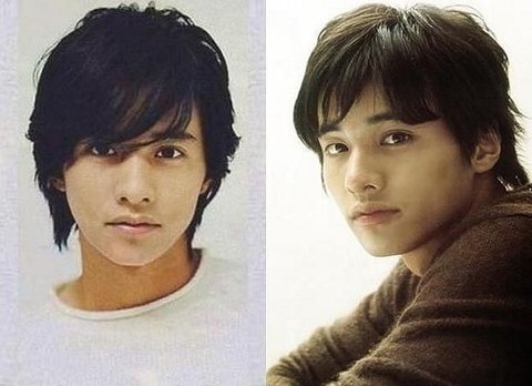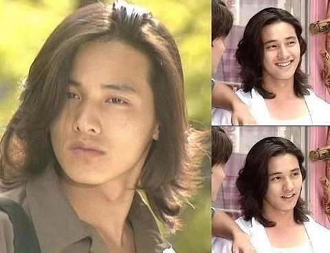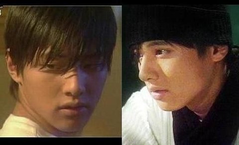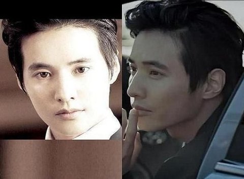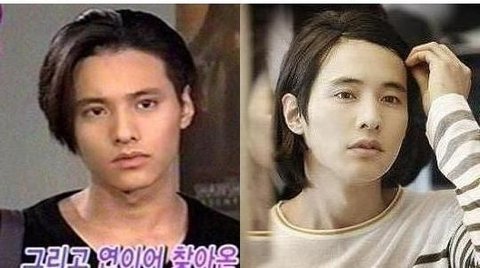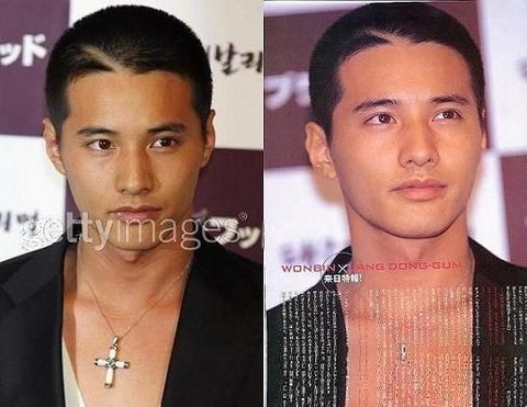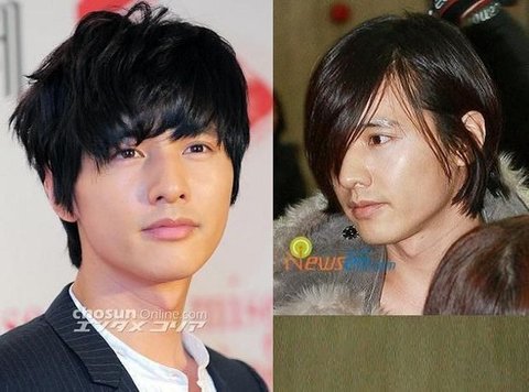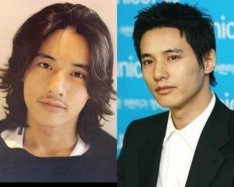 2005년도 군 입대전 긴머리 원빈, 2007년도 군 전역후 연예계 복귀때의 원빈