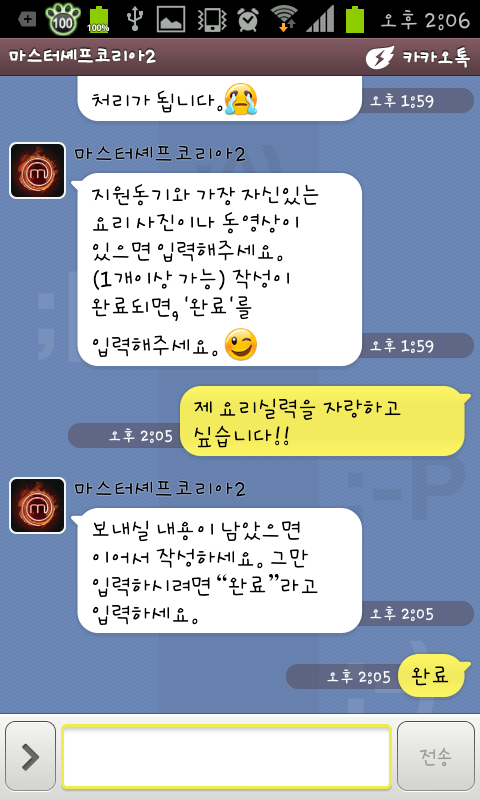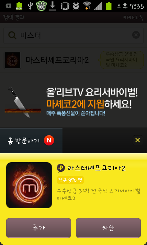 마스터셰프코리아2로 검색하여 플러스 친구 등록하고