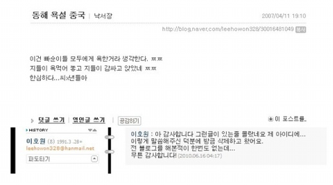 싸이월드에는 leehowon328@hanmail.net 인데 저건 네이버 블로그라 동일인물이 아니다라..