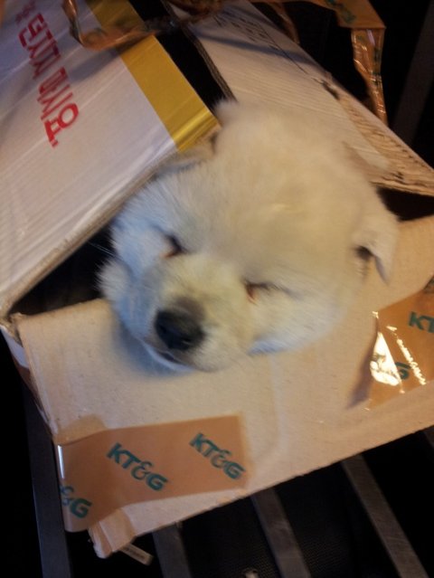 그런데......... 집에 애견 캐리어는 15살 푸들 아디용으로만 사용하던게 있어서 애기들한테는 많이 작더라구요 ㅠㅠ 부득이하게 큰 박스에 손잡이를 만들어서 애기를 데려가야 했습니다..ㅠㅠ
