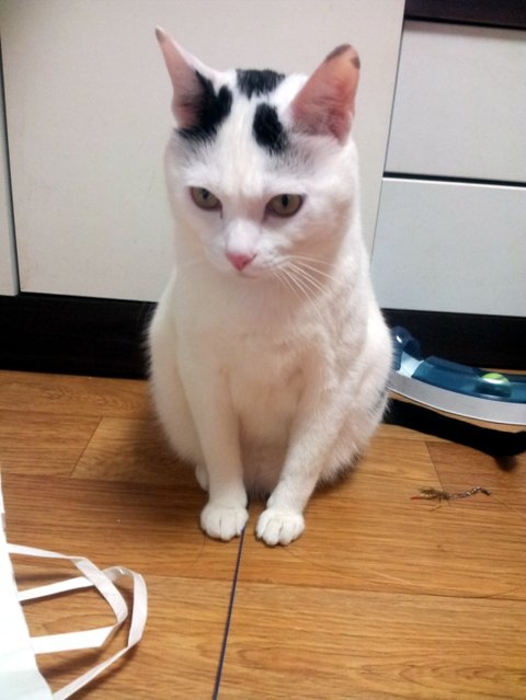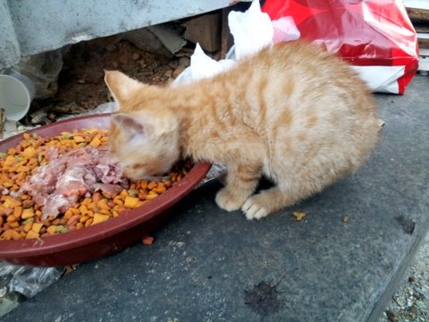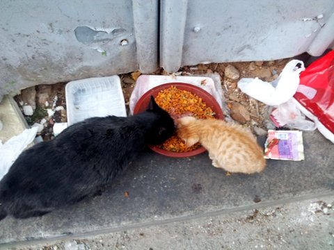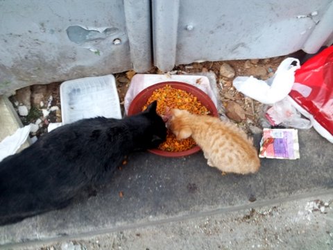 고양이 사료와 생선이 놓아져 있던 그릇을 보고,