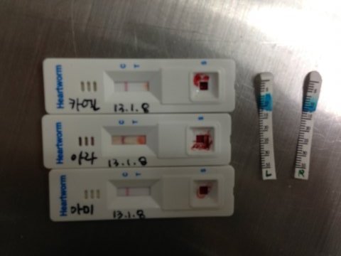아래는 아이들의 종합접종과 사상충검사 사진입니다.