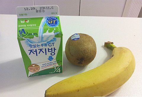 바나나 하나 , 키위 하나 , 우유 150ml