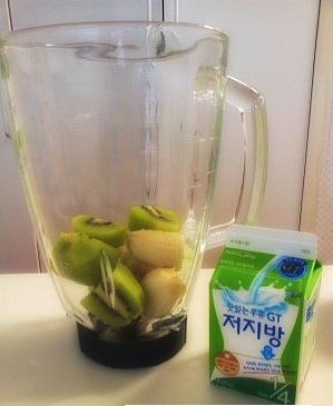 아침마다 키위 바나나 쥬스를 만들어 먹으면서