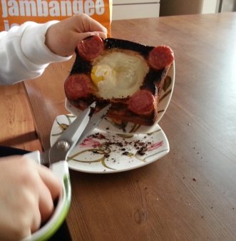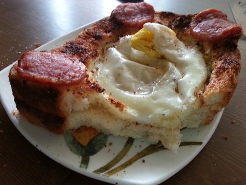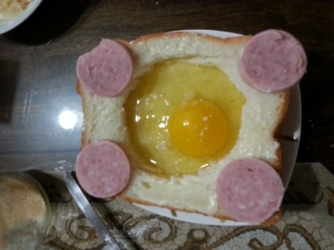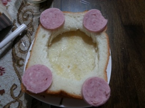 다른식빵을 숟가락으로 후벼파서 동그랗게 구멍내고 그 위에올림