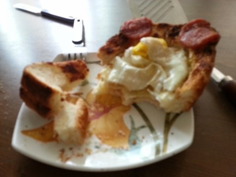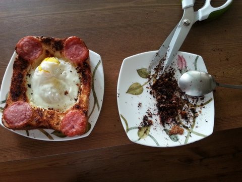 계란에 탄 빵부스러기는 숟가락으로 긁어 없애줌....