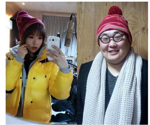 가수 김그림과 투빅 김지환이 같은 모자를 착용한 사진~~같은모자 다른느낌 제대로이네요 ㅋㅋ극과극!!!