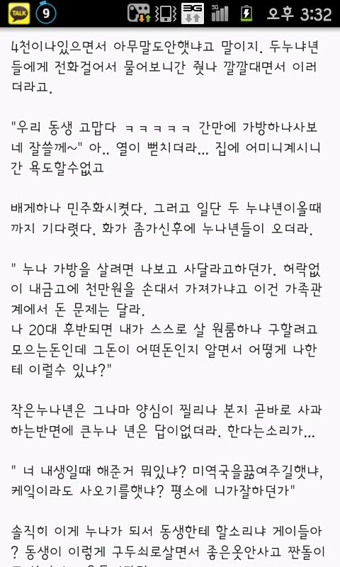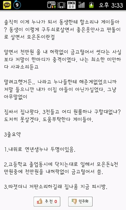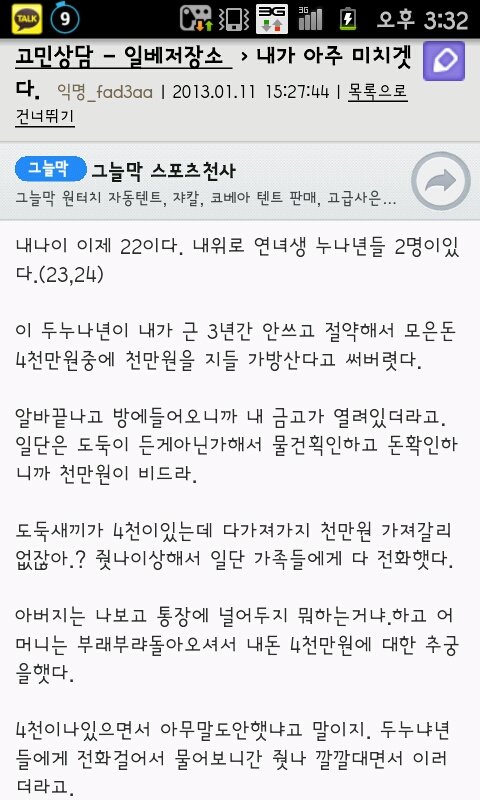 미친 나같으면 누나년들 잘때 가방훔쳐서 팔아먹고 잠적타고 만다-----------------------------------------------------------나는 도둑년들이랑 같이 살기싫어요^^ 내 가족중에 저런 사람이 있었다면 그사람이 내 가족이라는게 엄청 쪽팔리고 창피했을거 같네요제 성격이었으면 그냥 인연끊고 삽니다