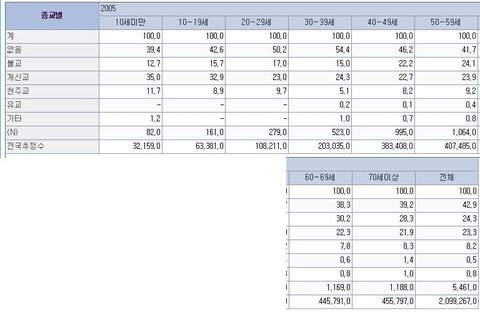 (한국통계청은 자기인식(self-cognition)을 중심으로, 스스로 자신의 종교가 무엇이라 인지하는지를 전수조사해서 통계를 내기때문에 정확한 편)
