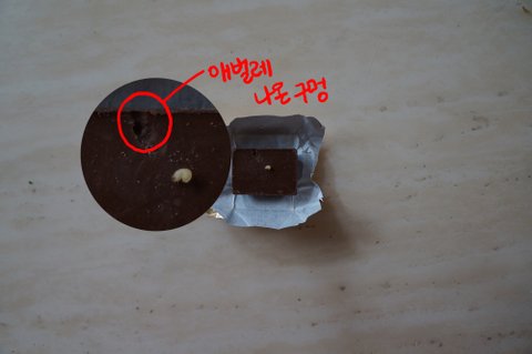 초콜릿 포장을 뜯자마자 저 살아있는 애벌레가 그 구멍에서 스물스ㅡ물룰 기어나왔으뮤ㅠㅠㅠㅠㅠㅠㅠ