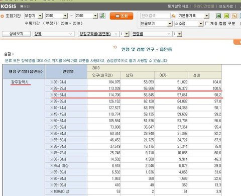 도시지역은 어딜가건 결혼적령기 젊은남녀는 남자보다 여자가 더많아 시골로가야 남자가 많아지는거지~