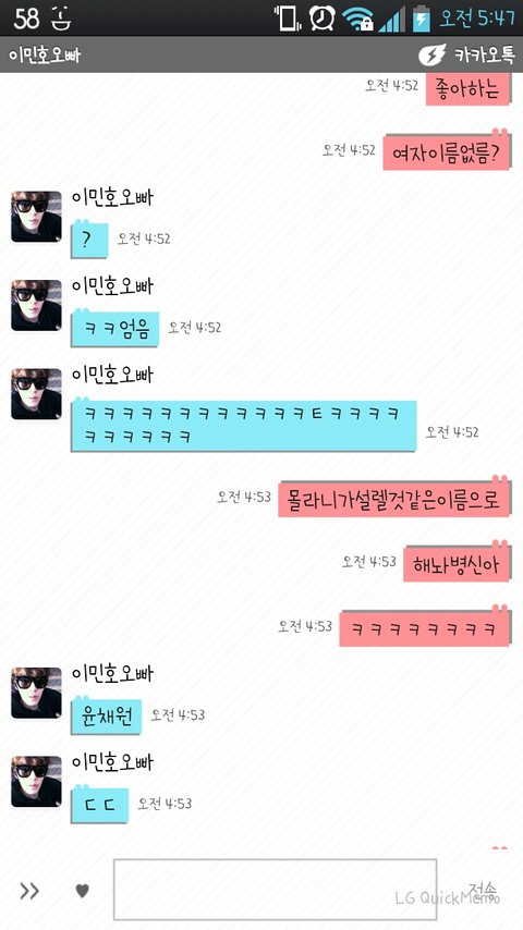 대화를올리겠음 ㅠㅠ...지송지송(중간에 욕도많이하는데 웃기다보니까 마니나오네요ㅠㅠ죄송죄송)