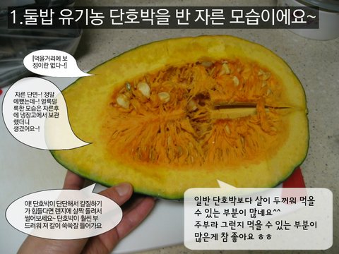 1.둘밥 유기농 단호박을 반 자른 모습이에요~