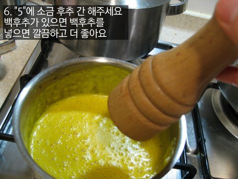 6. 5에 소금 후추 간 해주세요 백후추가 있으면 백후추를 넣으면 깔끔하고 더 좋아요