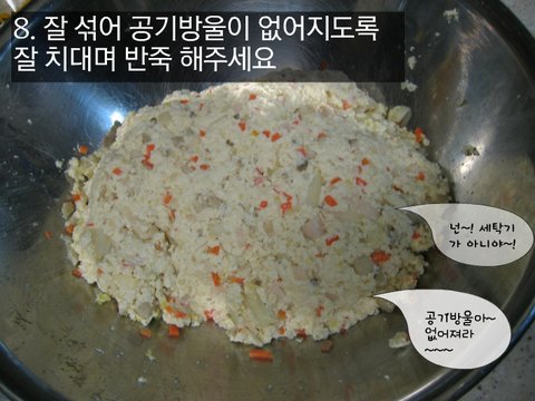 8. 잘 섞어 공기방울이 없어지도록 잘 치대며 반죽 해주세요