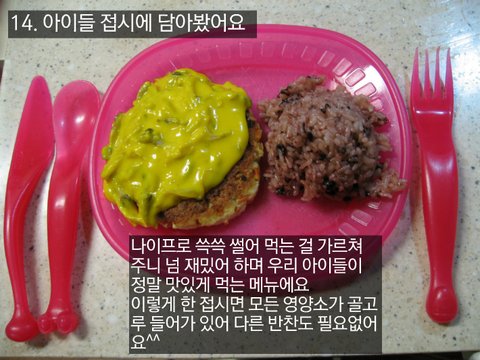 14. 아이들 접시에 담아봤어요 나이프로 쓱쓱 썰어 먹는 걸 가르쳐 주니 넘 재밌어 하며 우리 아이들이 정말 맛있게 먹는 메뉴에요