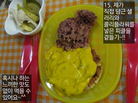 15. 제가 직접 담근 샐러리와 콜리플라워를 넣은 피클을 곁들여 봤더니 혹시나 하는 느끼한 맛도 없이 먹을 수 있어요~^^