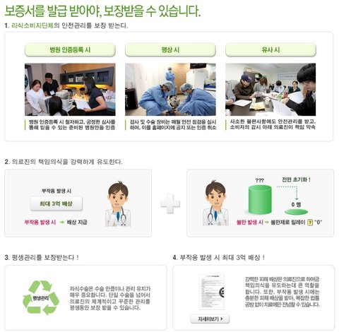 게다가 이제도는 억지로 병원에 가입을 강요하는것이 아니라고해요!병원의 자발적인 참여를 통해서만 인증병원에 가입할수 있기 때문에 라식부작용 에방을 위한 각병원들의마인드가 확실히 능동적인 형태로 갖추어져 있기때문에 더 믿음이 가는것 같아요