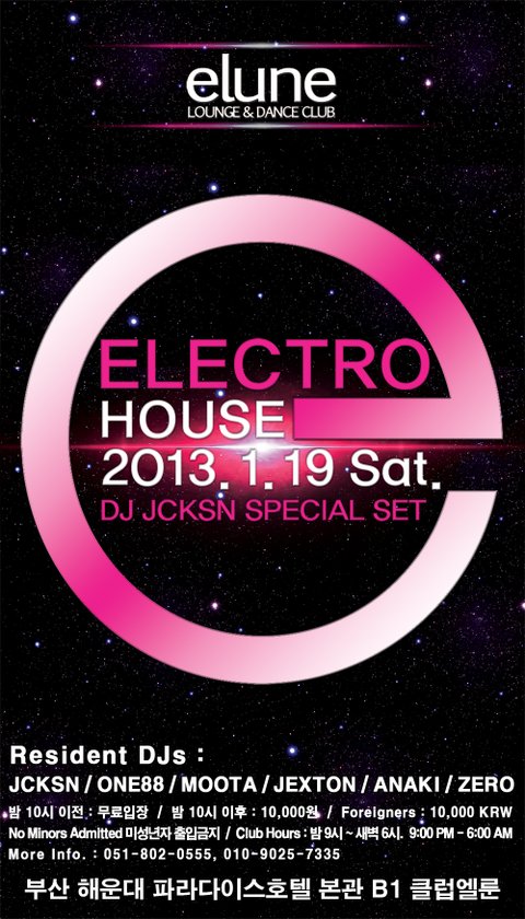 1.19 SAT 일렉트로 하우스 파티 with DJ JCKSN @ club elune
