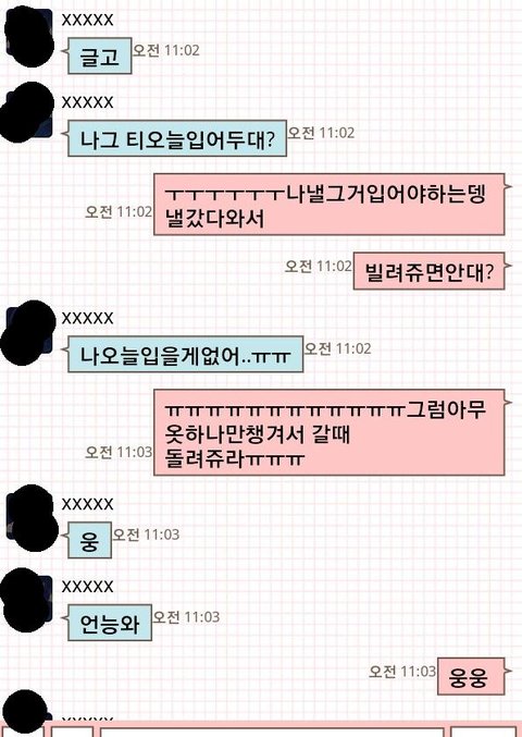 이건뭐 ㅋㅋ옷돌려달라하면 갑자기폐렴도걸리나봐여 ㅋㅋ