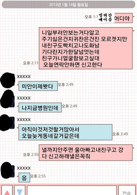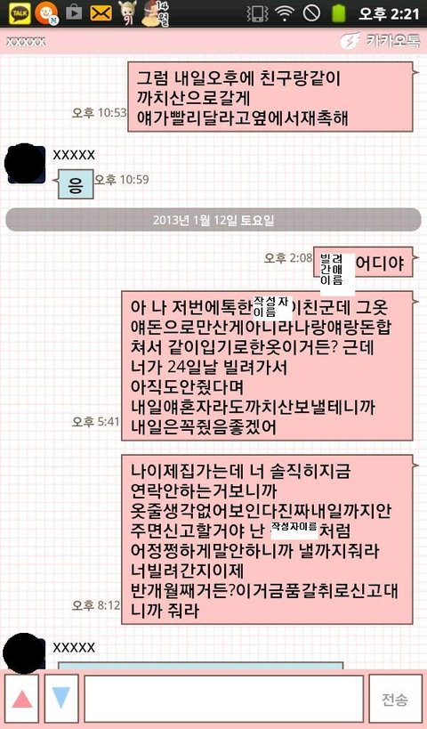 네 이년이 옷을 돌려줄 기미가 안보여서 전 제친구한테