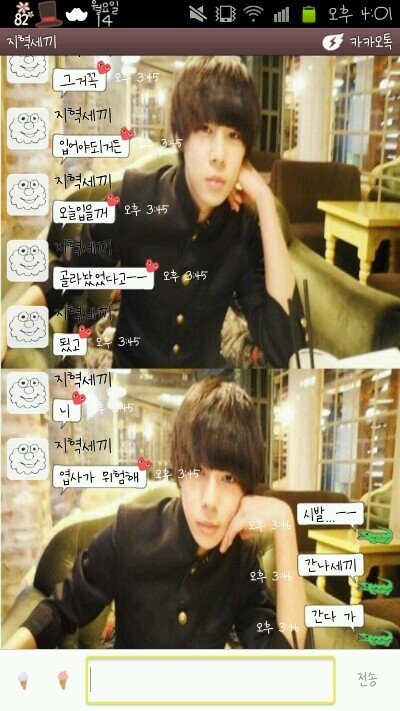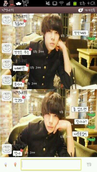 오빠랑 학교2013을 보고있었음. 내가 김우빈이랑 이종석 나오는 부분에서 '저 기럭지좀봐라. 누구랑은 다르네.' 하면서 오빠를 째려봤음ㅋㅋㅋㅋㅋㅋㅋㅋㅋㅋ 나중에 박세영 나오는 부분이 있었는데. '쟤는 왜이렇게 이쁘냐. 몸매봐라. 누구랑은 조카 다르네.'하면서 날 쳐다보는거임...ㅋㅋㅋㅋㅋㅋㅋ 둘이결국에 눈싸움하다가 내가먼저 눈을 감았는데 오빠가 오천원 이러길래 오천원 줬음ㅋㅋㅋㅋㅋㅋㅋㅋ