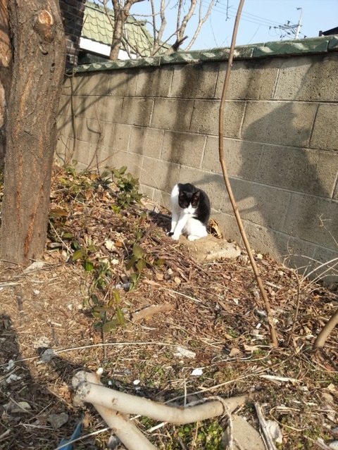 냐옹아 하고 부르니까 갑자기 저녀석이 겁도없이 총총총 하고 뛰어옴