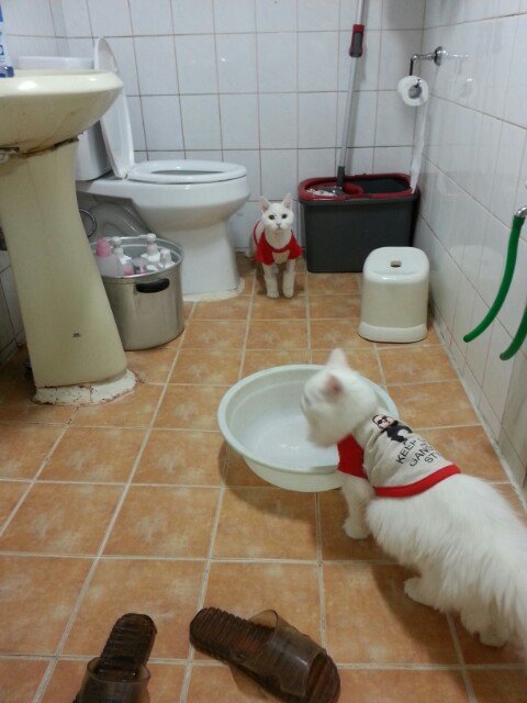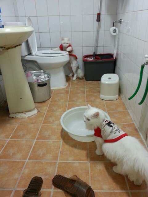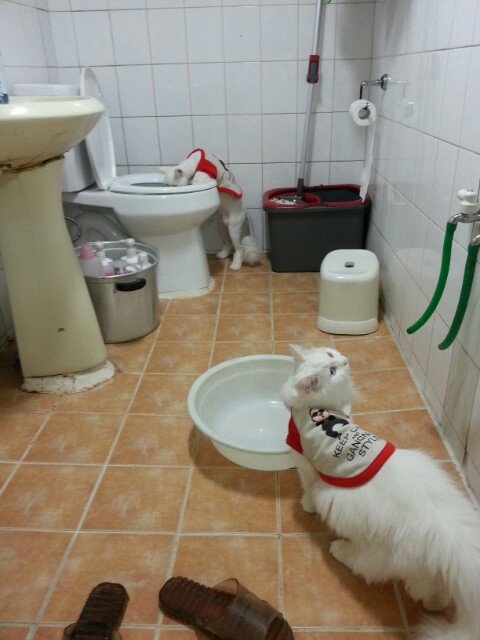 소자 변기안에 있는 물을 가지고 놀았습니다