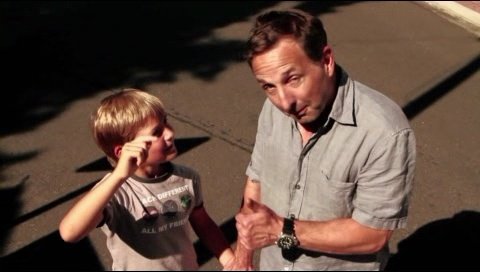 지나가던 아버지와 아들이 이 포스터를 보고 의미심장한 미소를 주고 받죠.