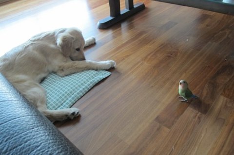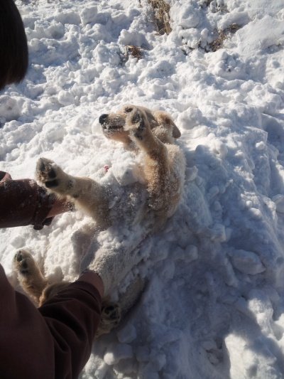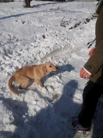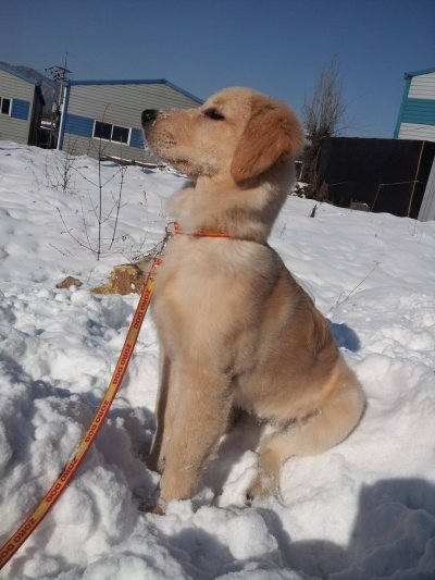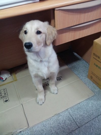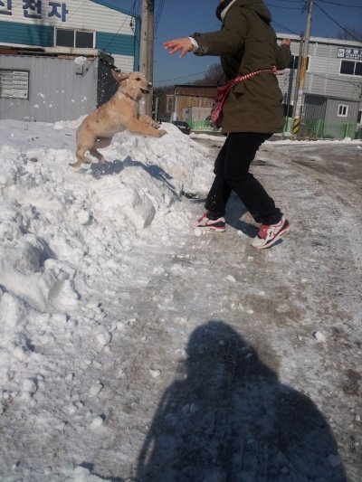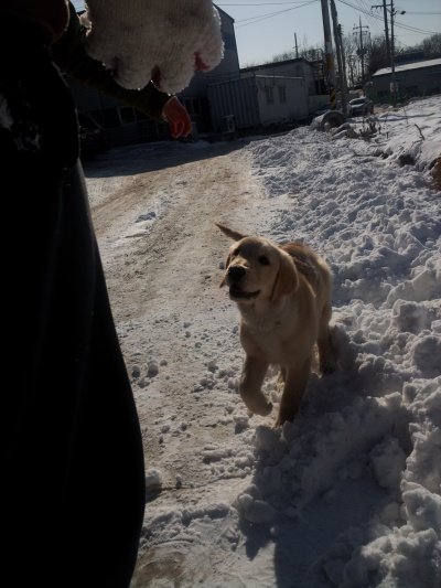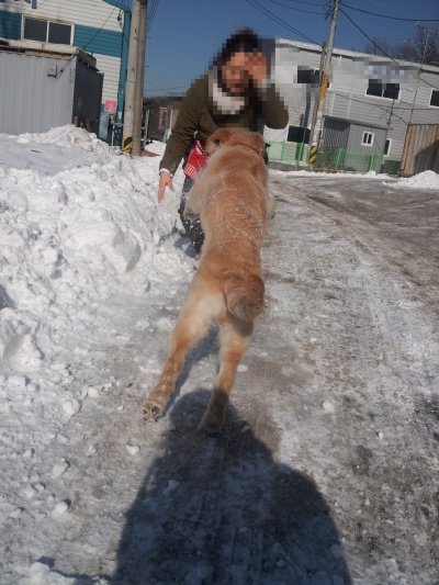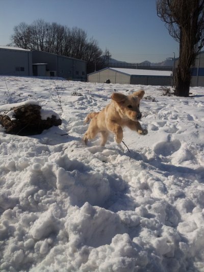 황금색에 아직 4개월인데 13kg 을 넘고....발이 사람발만한 ....................