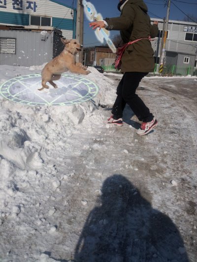 그리고 겨우 깨워 아빠랑 산책 하는데 어디서 속뒤틀리는 향이.....................아-_-