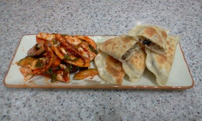 손님 치르고 남은 음식 재활용 1탄..잡채만두와 오징어 무침..