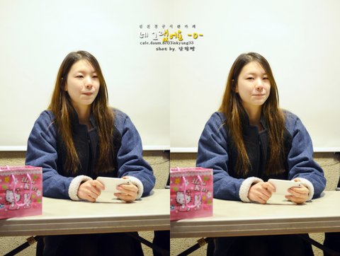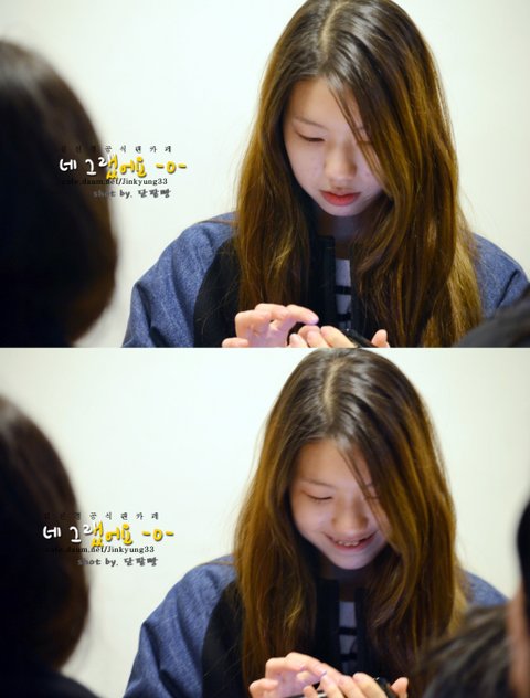 핸드폰을보다가 재밌는것을 발견했는지 활짝웃는 김진경~