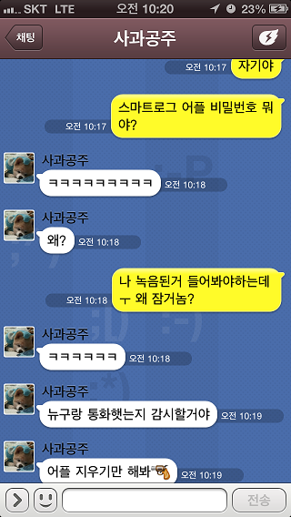그래서 순간 벙 쪄있다가 여친이 핸드폰 만진게 생각나서 물어봤습니다.