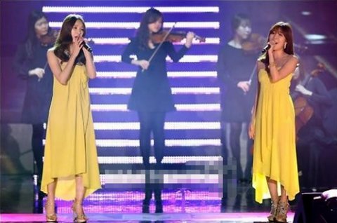 샛노랗고 커튼 돋는 치렁치렁 드레스를 함께 입고 온 다비치