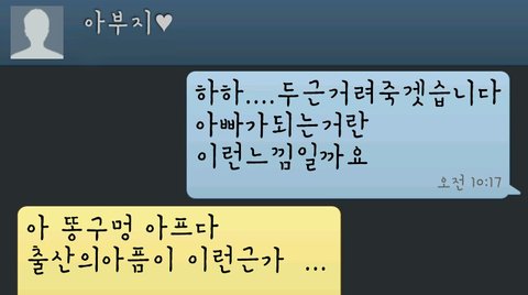 마지막으로 막내가 태어나는 순간 아빠와 주고 받은 문자...