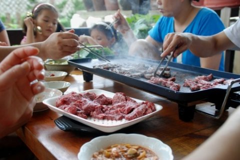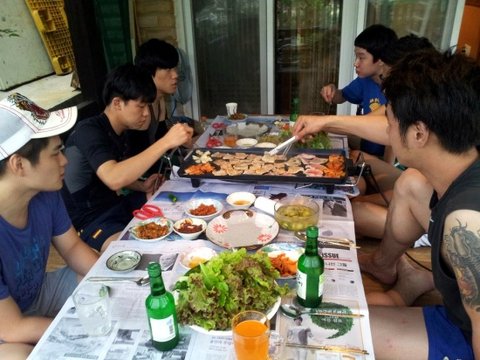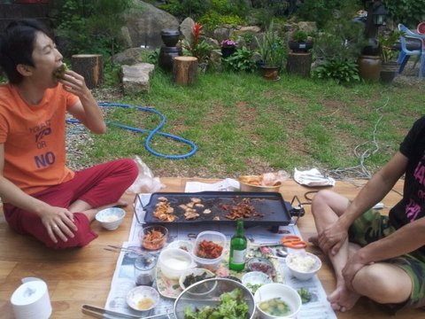 직접 만든 1층 오두막에서 가족들과 고기도 ㅋㅋㅋㅋㅋ