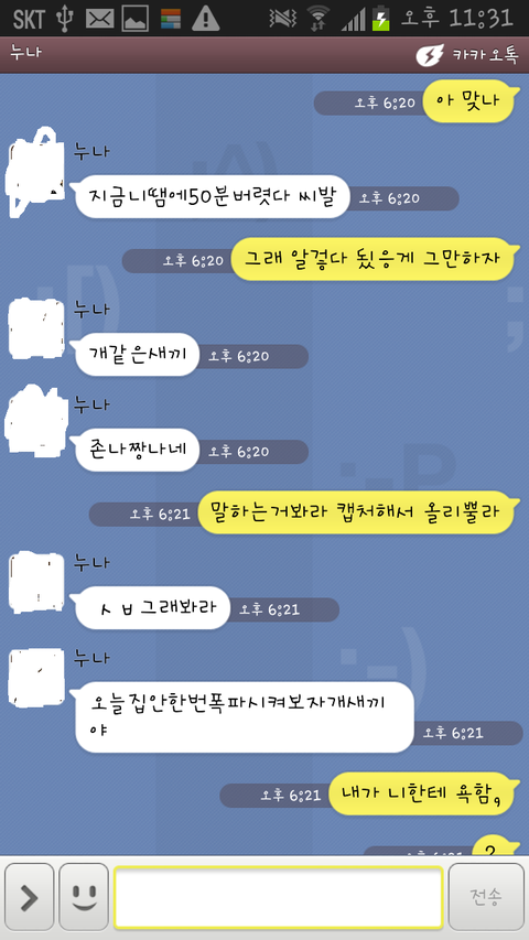 내가 욕하는걸 적나라하게 녹음을하고 아버지한테 들려준적도 있음