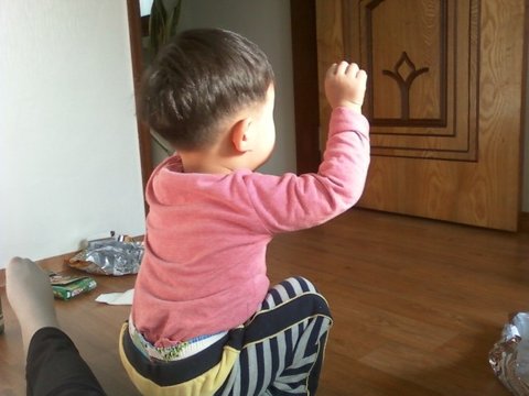 두-둥! 앉혀주면 지탱하고 앉을수 있을정도일때 민기는.....안고 있으면 힘이들었죠....![]()