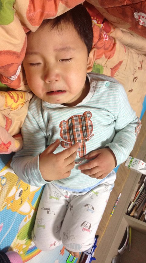 울다가 저표정 저자세로 자는 민기♥