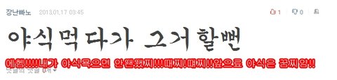 혹시 치킨,자짱면??안뙈~~그료묜 때찌!떄찌!!할꼬얌!!다이어튜 할때는 이룐음식묙으면 얀뙈~