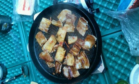 고기,고구마도 구워먹고 김치찌개와 떡볶이도~
