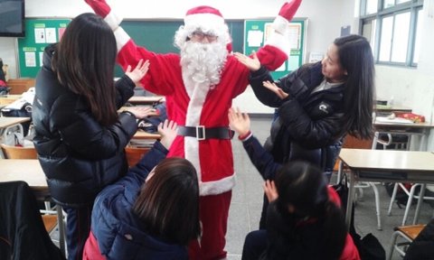 이 산타는 학교에 누가 의상을 가져와서 입고 운동장 돌아다녔어요 여학생입니다ㅋㅋㅋ
