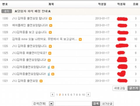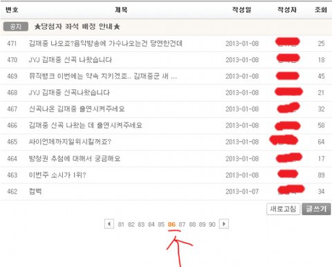 페이지 86까지 모두 김재중의 뮤직뱅크 출연을 요청하는 글입니다
